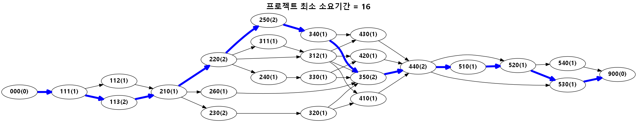 프로젝트 일정 계획에 사용하는 임계 경로를 계산할 수 있는 웹 애플리케이션입니다. 컴퓨터소프트웨어공학과 학생은 강의시간에 알려준 계정 정보를 이용하여 로그인 가능합니다.
